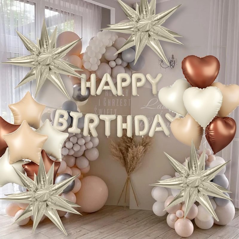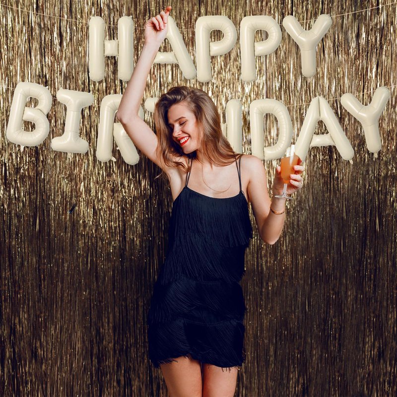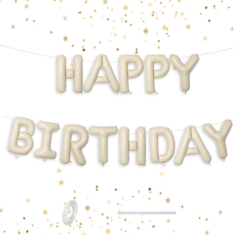 - Happy Birthday Balloons :This 16 inch cream birthday balloon letters is a great choice for your birthday celebrations. 13 pieces independent letters balloon which can combine with “ HAPPY BIRTHDAY” with beautiful color and sturdy foil balloons.1 pcs ribbon. Bringing you a happier and unforgettable birthday party!