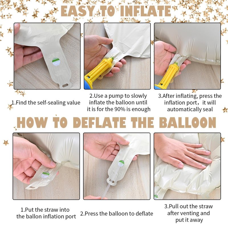 - Warm Reminder:Due to the thermal expansion and contraction characteristics of aluminum foil, please avoid filling it with more than 90% air or helium. If over-inflated, it can easily cause the birthday balloon banner to explode at high temperatures. Please avoid placing the birthday balloons in an outdoor high temperature environment for a long time. If the ambient temperature is too low, it will also cause the balloon to deflate. At this time, it can be slowly re-inflated.