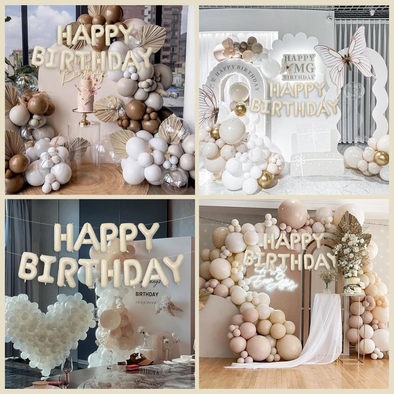 Cream happy birthday balloons are suitable for various occasions, suitable for men, women, boys, girls, and children to decorate their birthday parties, suitable for couples, companies to decorate their anniversaries, and also suitable for New Year, Christmas, and other party events.