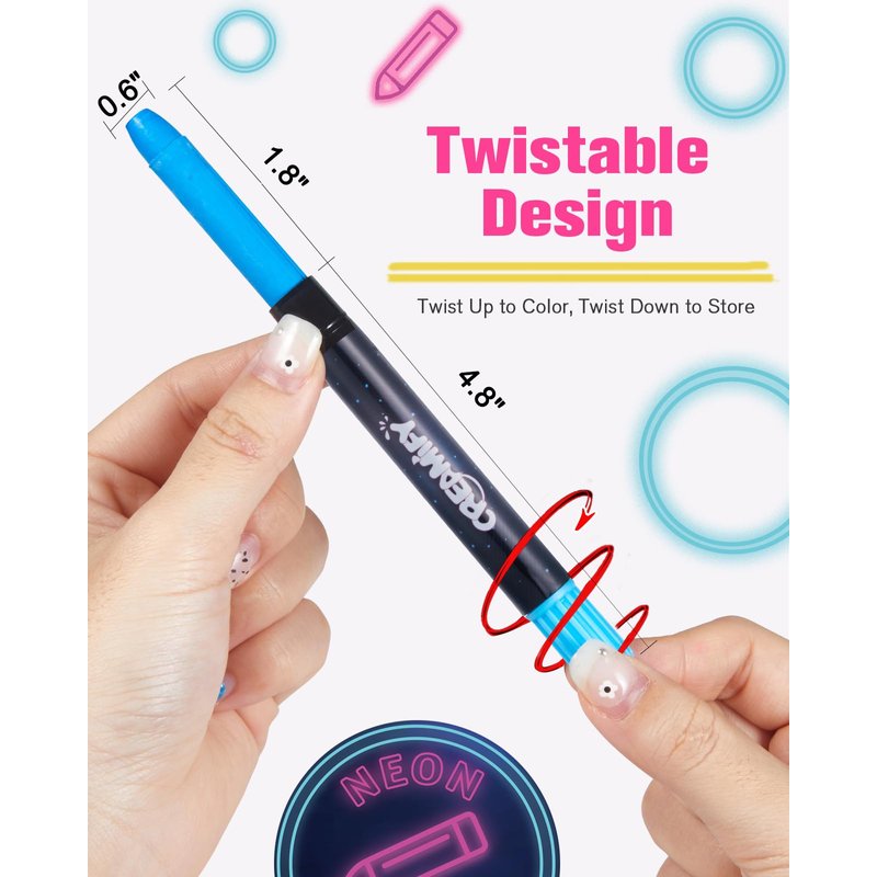 - 🌈Perfect Gift: This fluorescent face paint crayon kit is a unique and perfect gift , ideal for black light birthdays, halloween, masquerades, cosplay, festivels and makeup parties with UV lighting.