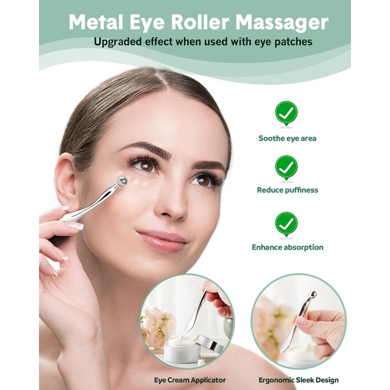 - Metal Eye Roller Massager: The metal eye massage stick included in the set can be used as an eye cream applicator and an eye roller massager to soothe the eye area, reduce puffiness, and enhance absorption