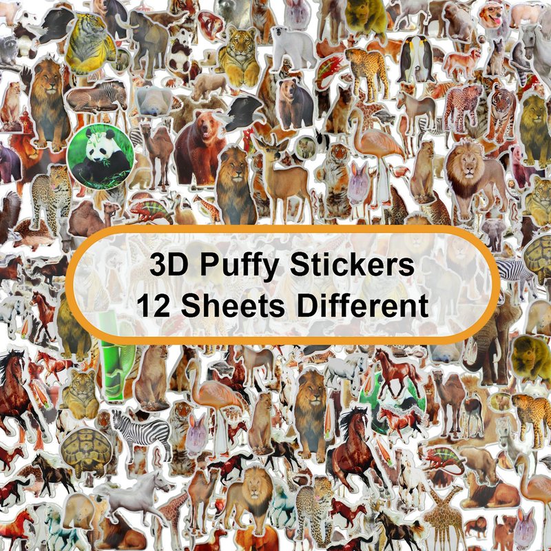 Creammuffin Stickers Party Supplies Kits for Toddlers, Children 3D Puffy Animal Stickers Tiger Sticker- Over 180 Stickers (Real Animal)