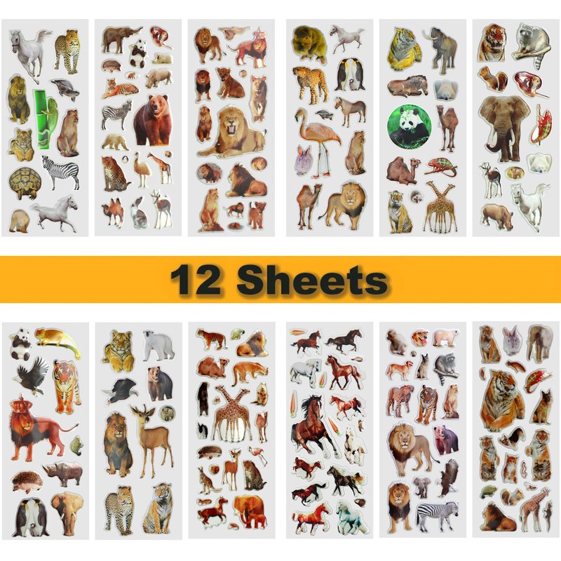 - There are more than 180 colorful animal stickers on 12 sheets of 6.77 "x 2.75" paper. These stickers are an important addition to any animal-themed birthday party. The stickers are bright and fun, perfect for toddlers and children.