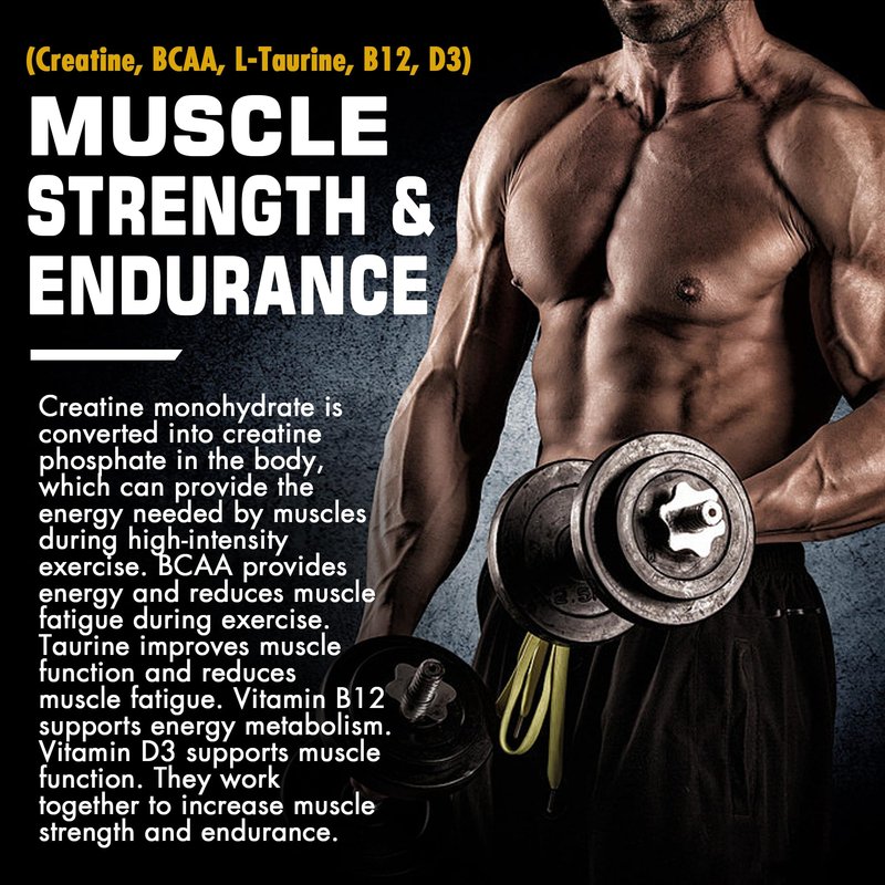 - ⚡💪【MUSCLE】Creatine monohydrate is converted into creatine phosphate in the body to provide muscles with the energy required during high-intensity activity. Plus high-quality ingredients B12, D3, ect, they work synergistically to help replenish ATP levels in muscles.