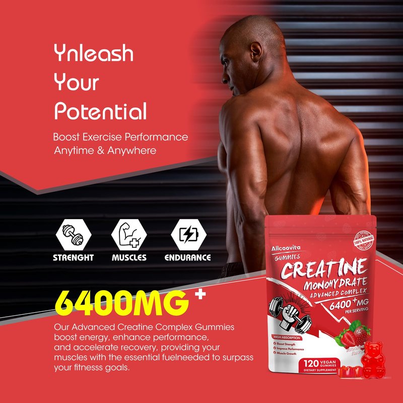 - Advanced Formula & Maximum Potency: Experience the power of our Creatine Monohydrate Gummies Complex, packed with a potent 6400mg per serving. This advanced formula is enhanced with L-Taurine and Vitamin B12, delivering maximum efficacy for muscle strength and energy. Each gummy is meticulously crafted to provide the optimal blend of ingredients, ensuring you achieve peak performance in your workouts. Feel the difference with our high-potency, expertly formulated gummies designed for both men and women.