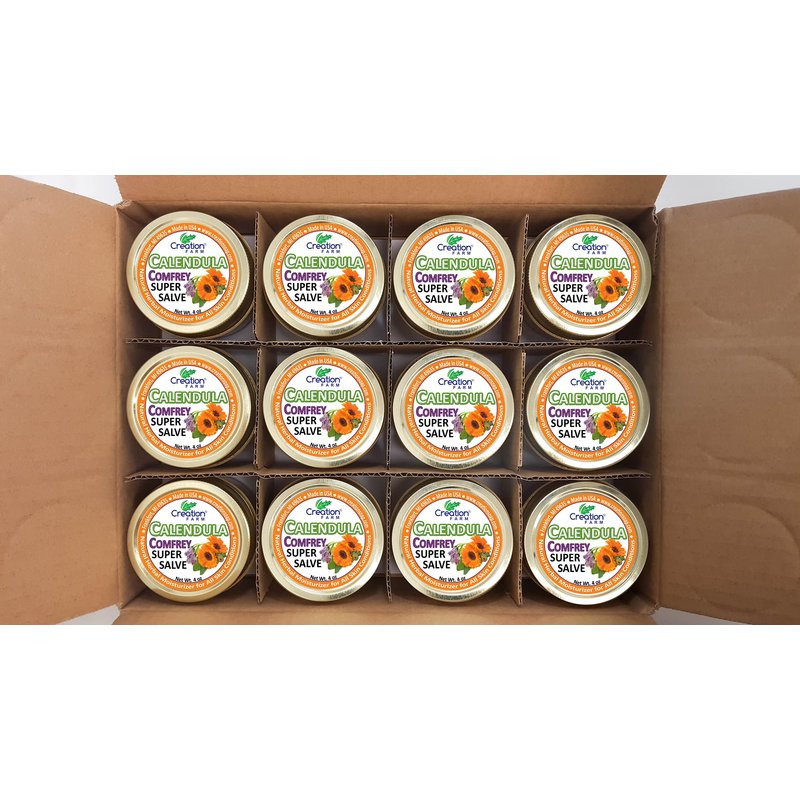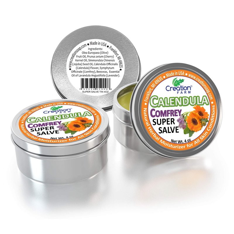 Creation Farm Calendula Comfrey Super Salve 8OZ- (2-4 oz Jars) Balm Soothes Baby Bottoms, Eczema, Hand Cream for Dry Cracked skin, Tattoos and Beards Grown and Made in USA from Real Herbs