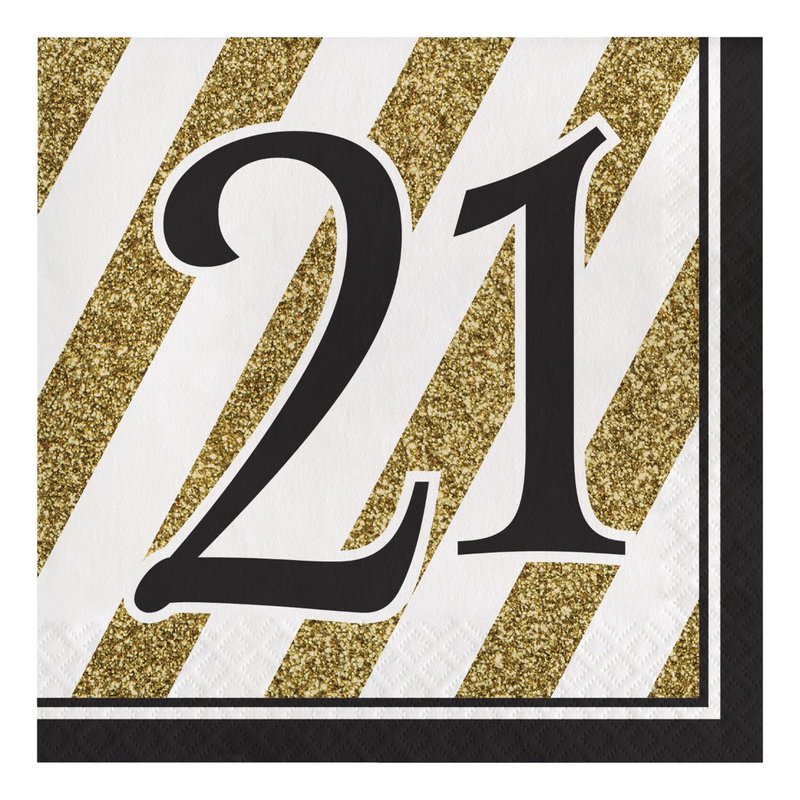 Creative Converting Black and Gold 21" Paper Luncheon Napkins, 6 1/2 In, 21st Birthday