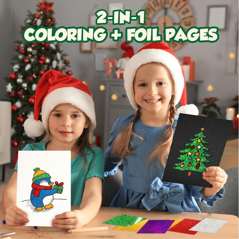 Creative Foil Art Kit for Kids - Christmas Themed Craft Set with 90 Foil Sheets & 32 Pages - Fun DIY Activity for Kids Ages 3-9 - Perfect Holiday Gift, Mess-Free Crafting & Creative Play