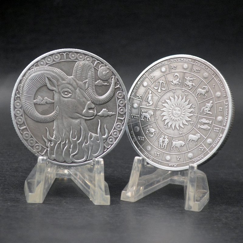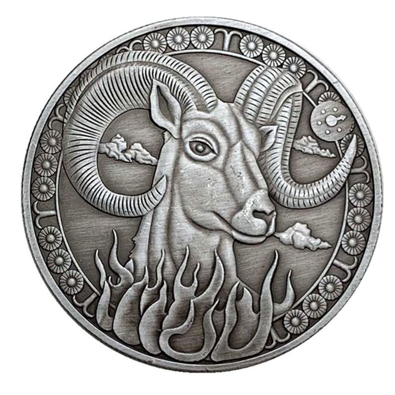 Creative Twelve Constellations Zodiac Coin Challenge Ancient Silver Commemorative Coins Home Decor Crafts Art Collection Gift (Aries)