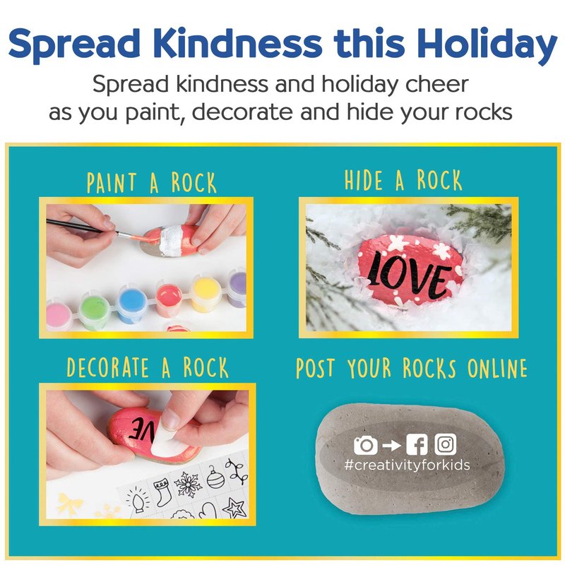 - PAINT AND HIDE YOUR ROCKS - Spread kindness this holiday by hiding painted rocks throughout your community. This intro to rock painting kit is open-ended which allows you to customize your painted rocks so they are unique to you