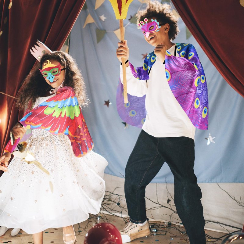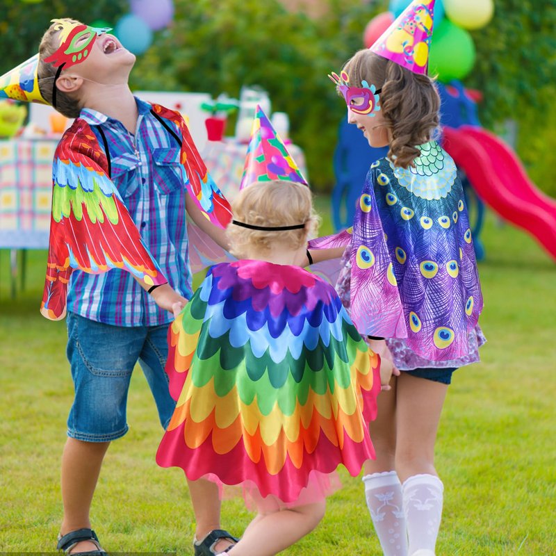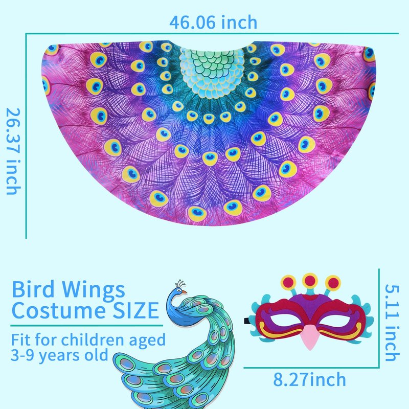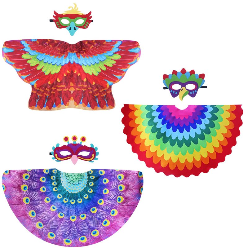 - ★Much Loved Design & Material - Boys Dress Up Clothes for Play, made of premium durable satin, with soft touch feeling, your kiddo will enjoy Pretend Play & Dress Up. Unique technique makes each feather vivid and vibrant. Bird Masks Kids made of high quality felt, great for imaginative play. Bird Costume Kids, 48’’*23.6’’, perfect size for boys from 3-9.