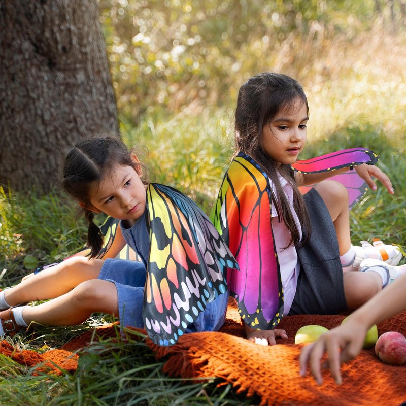 - ❀【HAVE A SPLENDID TIME】: Put on Toddler Butterfly Cape, glossy and light-weight satin will make your kiddo love the feeling of Dress Up, even a slight breeze can keep wings fluttering. Fly to a forest, make friends with Ladybugs, Ants, Snails, dance freely like fairy princess among the flowers.