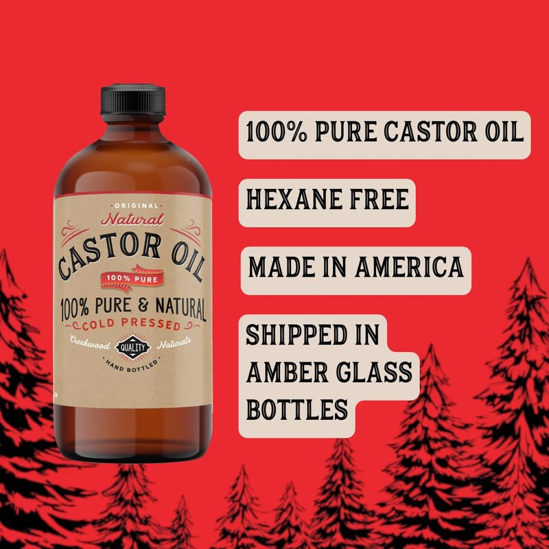 Our Castor oil is 100% pure natural castor oil that is pure, natural, and hexane free. Castor oil can be used for eyelashes, eyebrows, smoother skin, or other holistic needs. Our castor oil is cold pressed with no added preservatives. Because of its purity it easily absorbs into your lashes and brows to boost hair health. We only ship our castor oil in amber glass bottles in order to protect from UV light degradation. Our castor oil is 100% pure with no carrier oil added. Castor oil has been used for hundreds of years all over the world as a remedy to thinning, stunted hair, help eyelashes and brows appear longer and thicker, as well as fight hair loss. Why Castor Oil? With omega 6 fatty acids, Castor Oil is known to moisturize, soften, and soothe while supporting: Healthy, smooth-looking skin Clear pores Thick, glossy hair Full eyebrows And more! Simply massage the oil into troubled areas or make a pack with wool or cotton flannel to assist with absorption. No matter how you apply, a healthier you could be just around the corner Why Creekwood Naturals Castor Oil? Our Castor Oil is 100% hexane free, BPA free, and we believe that health supplements and beauty products should be made in a healthy way, period. NO phthalates NO gluten NO artificial ingredients or colors Creekwood Naturals is here to improve your life with only the best natural Castor Oil available!