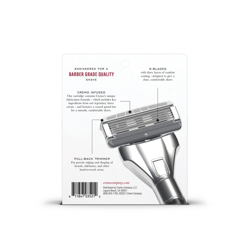- Cremo-Infused Hydrating Gel Pools: For an Impossibly Slick, Barber-Grade shave. Our cartridge contains Cremo's unique lubrication formula - which includes key ingrediants from our legendary shave cream - and features a coasted guard bar for a smooth, comfortable shave.