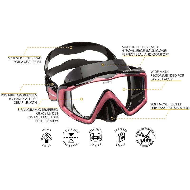 Cressi Liberty Triside Spe Diving Mask, Black/Black/Pink