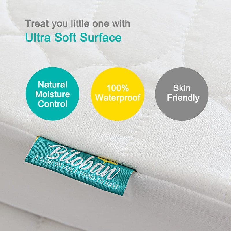 - 4-layer Thick Design & Extreme Comfort: Biloban baby crib mattress cover with 4-layer thick design keeps your little one warmer in winter and cooler in summer. Soft fabric, the most absorbent textiles fabric, draws moisture away from the skin faster and allows your child to have a more comfortable night's sleep.