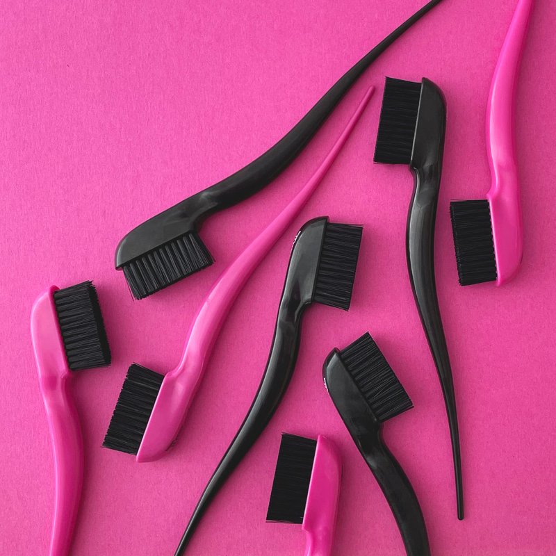 - COMPACT FOCUSED BRUSH HEAD – Helps to smooth down baby hairs and assists in detailed styling. Use it to help sculpt baby hairs and tame flyaways near the hairline for a polished look.This 2-pack comes with 1 black brush and 1 pink brush.