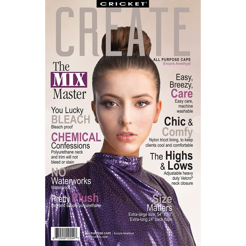Cricket Encore All Purpose Professional Salon Cape Waterproof Bleach Proof Cape for Hair Stylist, Adjustable Neck Client Gown, Amethyst