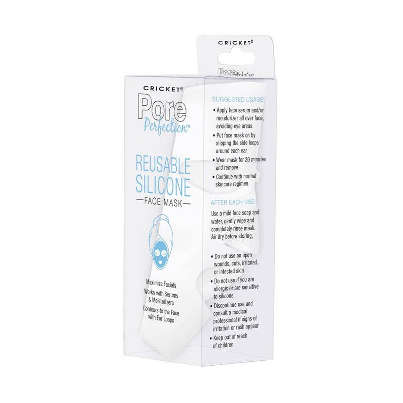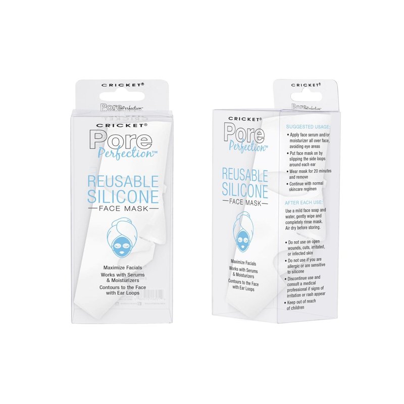 Cricket’s Pore Perfection Reusable Silicone Face Mask helps lock in the moisture from facial serums and moisturizers, as where disposable face masks evaporate and dry out. This silicone mask is not just environmentally friendly, it assists in maximizing skin care effectiveness. Since it is not infused with any ingredients, you have the freedom to customize your skin care experience. This mask is ultra-thin, with great elasticity, it contours to the face and is secured with side ear loops.