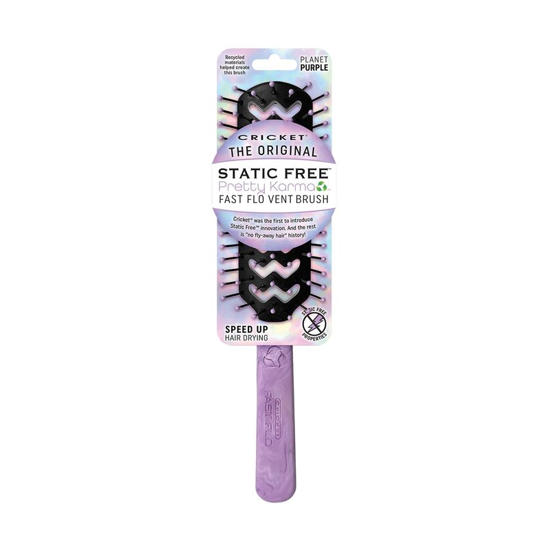 Cricket Static Free Fast Flo Pretty Karma Vent Hair Brush for Blow Drying, Styling and Detangling for All Hair Types, Eco Friendly, Recycled Materials, Planet Purple