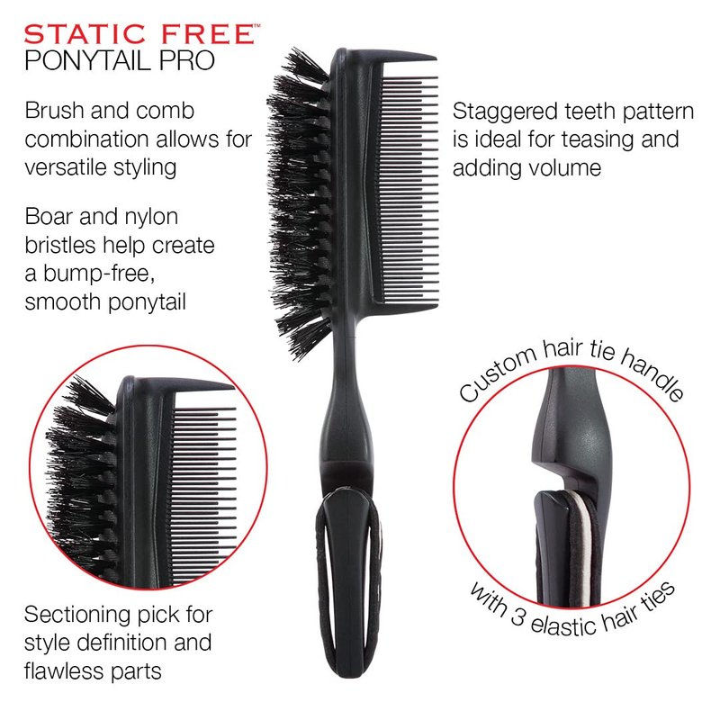 - Smooth and Versatile Styling: Whether you're creating high, low, messy, or twisted ponytails, this brush delivers smooth results every time. Proudly designed in the USA, the Static Free Ponytail Pro Brush ensures premium styling for all hair types.