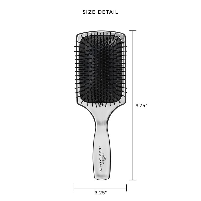 - PLASTIC BRISTLES - This plastic bristles on this paddle brush by Cricket easily penetrates the hair helping to detangle and reduce the amount of static produced. The super soft cushion pad is responsive to pressure while being gentle. It conforms to the contours of the scalp for pain-free styling experiences.