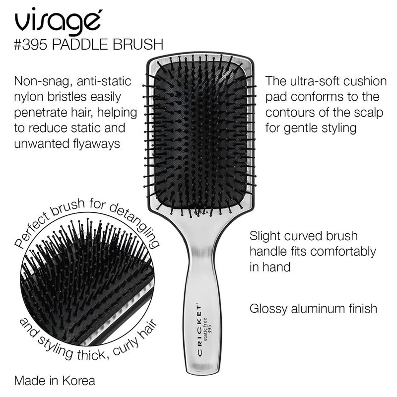 - PADDLE BRUSH - Cricket’s Visage 395 Paddle Brush is a professional hair brush that is Made in Korea. Designed to be used everyday for hair styling, this brush has a super soft cushion pad making this brush gentle on the scalp.