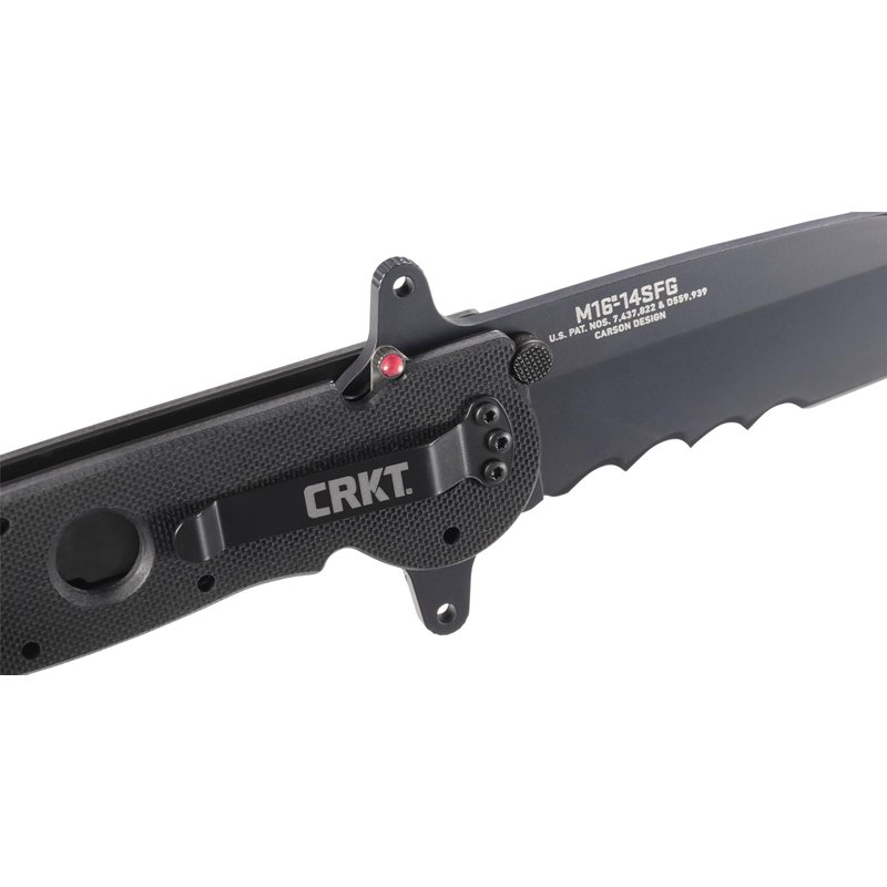 CRKT M16-14SFG EDC Folding Pocket Knife: Special Forces Everyday Carry, Black Serrated Edge Blade, Tanto, Automated Liner Safety, Dual Hilt, G10 Handle, 4-Position Pocket Clip
