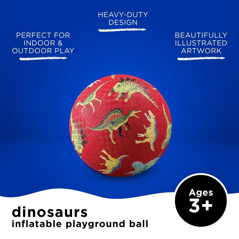 Crocodile Creek Playground Ball - Durable Rubber Ball for Kids Ages 3 and Up - Bouncy Inflatable Ball for Kickball, Indoor Games, and Outdoor Sports - PVC-Free - Dinosaurs - 5-inch Diameter