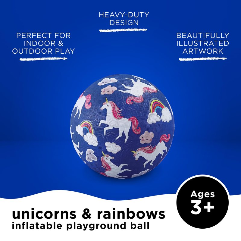 Crocodile Creek Playground Ball - Durable Rubber Ball for Kids Ages 3 and Up - Bouncy Inflatable Ball for Kickball, Indoor Games, and Outdoor Sports - PVC-Free - Unicorns - 5-inch Diameter