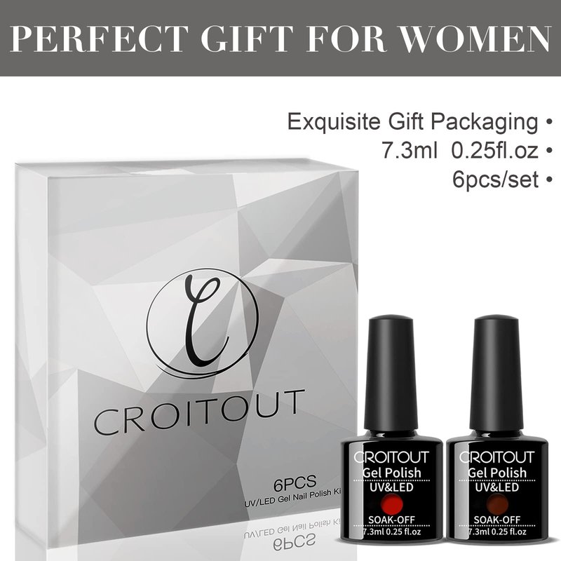 - 【Ideal Gift for Women】Croitout nail gel polish kit comes in a beautiful gift box. Croitout Gel Nail polish Kit is perfect for daily routine life, working, party or ceremony activity, such as birthday, holiday, anniversary, New Year, Christmas, Valentine's Day, Mother's Day gift.