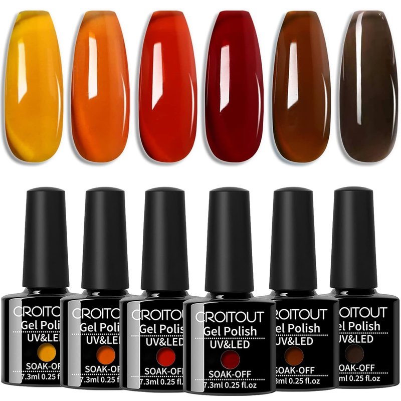 - 【Jelly Gel Nail Polish Fall Colors Kit】You will get 6 x 7.3 ml Croitout Gel Polish to create your favorite nail style. Beautiful shades of popular and trendy colors are suitable for the fall and winter seasons and daily routine life! As a beginner, you can get pretty nails without much practice.