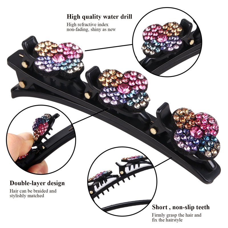 - 【Unique Double Layers Design】The sparkling crystal stone braided hair clips are unique designed to be double layers with multi clips,barrettes with 3 clips on top.