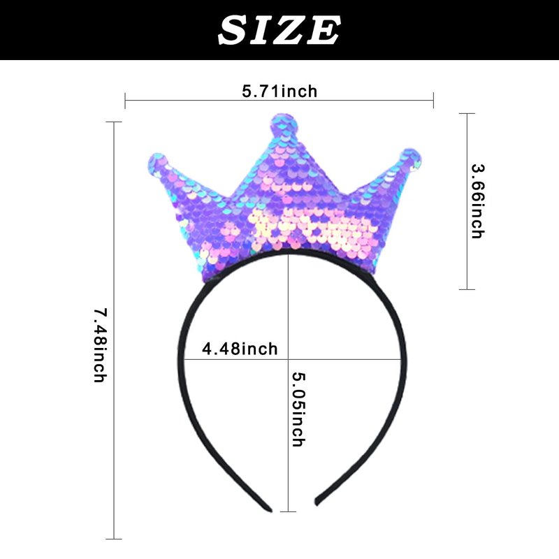 - ⭐Excellent Material: Crown sequins hair hoop is made of high-quality laser sequins, soft cloth and plastic by hand. Non-slip: The hairband fits your head properly and the headband does not slip off your head like other fabrics.