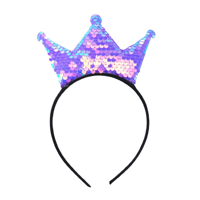 Crown Headband Laser Glitter Hair Band Crown Sequin Hair Accessories Girls Women Birthday Party International Children's Day (Lavender)