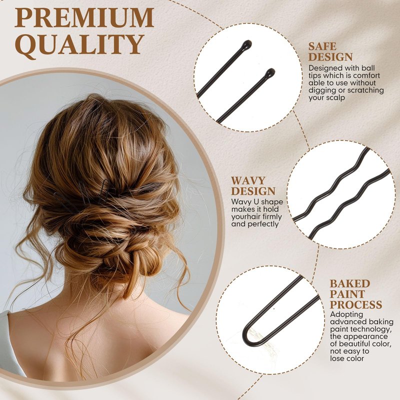 - Easy to Create Hairstyles: the length of the black hair pins are 6 cm/2.4 inches, and the U-shaped hairpin has wavy folds on both sides, which is anti-falling, and can fix your hair in place, making it easy to shape hairstyles