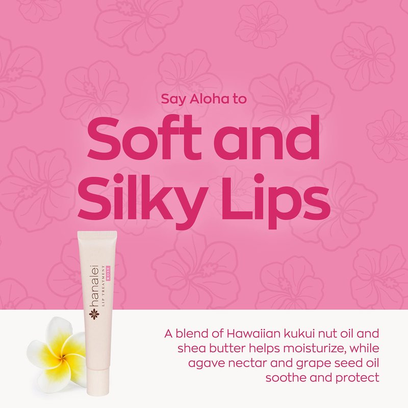 Say aloha to soft and silky lips with our lip treatment made with Hawaiian botanicals. Not your ordinary lip smacker, our lip treatment is infused with Hawaiian kukui nut oil that’s rich in essential fatty acids and Vitamins A, C, and E to deliver a wave of hydration. Our lip treatment can deliver up to a 46% increase in hydration and up to a 59% reduction in moisture loss after just 1 day of use. For Protective Lip Care Antioxidants in agave nectar and grape seed oil help protect lips from harmful free radicals. Achieve that Soft Lustrous Finish Our lip treatment makes a great alternative to your regular tinted lip balm. It gives your lips a fresh and healthy appearance, without that sticky feeling. Safe and Effective Our renewing skincare products are cruelty-free, paraben-free, sulfate-free, talc-free, and silica-free. Each is formulated to perfection without performing or engaging in any product trials on animals. We are certified as a cruelty-free brand in the Leaping Bunny Program. How to Use Smooth onto lips. Use throughout the day or as an overnight lip treatment. For best results, use after our Hanalei Sugar Lip Scrub. Available in 3-pack travel size sets or full-size. Seven flattering shades for every occasion. Note: This product contains Kukui Nut Oil. Individuals with nut allergies should avoid use. Your Satisfaction Matters Unsatisfied with your order? Hanalei is one message away to assist your refund or replacement request. More than anything else, customer feedback matters!
