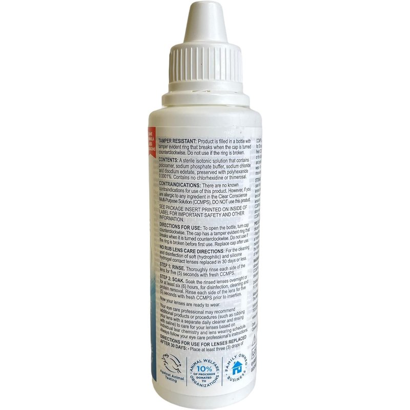 - VEGAN CONTACT SOLUTION – 100% vegan ingredients & cruelty-free. Clear Conscience contact lens solution is never tested on animals. We donate 10% of proceeds to animal welfare organizations– join us in making our world a better place for all animals!