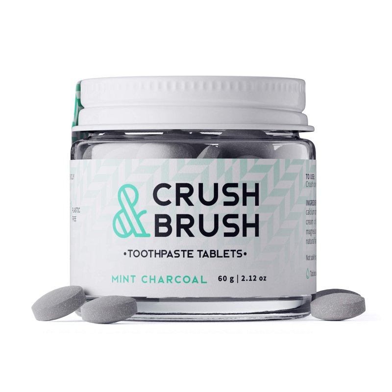 Crush & Brush Toothpaste Tablets-Mint Charcoal Glass JAR - 60g ~ 80 Tablets