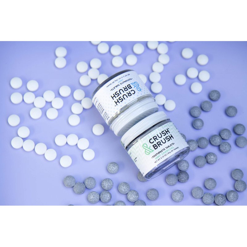 - TRAVEL READY! Crush & Brush tablets are ready to go, wherever you go! Keep them in your purse, backpack, or car for fresh breath anytime.