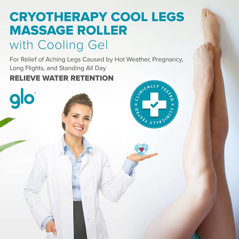 Cryotherapy Cool Legs Massage Roller with Cooling Gel | for Relief of Aching Legs Caused by Hot Weather, Pregnancy, Long Flights and Standing All Day | Relieve Water Retention | GLO Patented Design