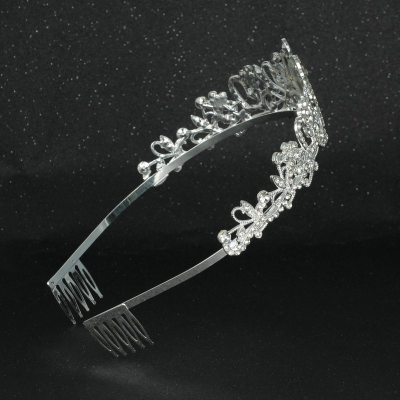 【Crystal Rhinestones Crown】- About 5.1 inch (13CM) in diameter, 1.9 inch ( 5CM ) high; Crown Weight:2.3 ounce (65g); Material: Alloy, Acrylic; Our rhinestone Tiara crown has a small comb at the end on both sides to clamp the hair more tightly. You don't have to worry about falling when you use it.