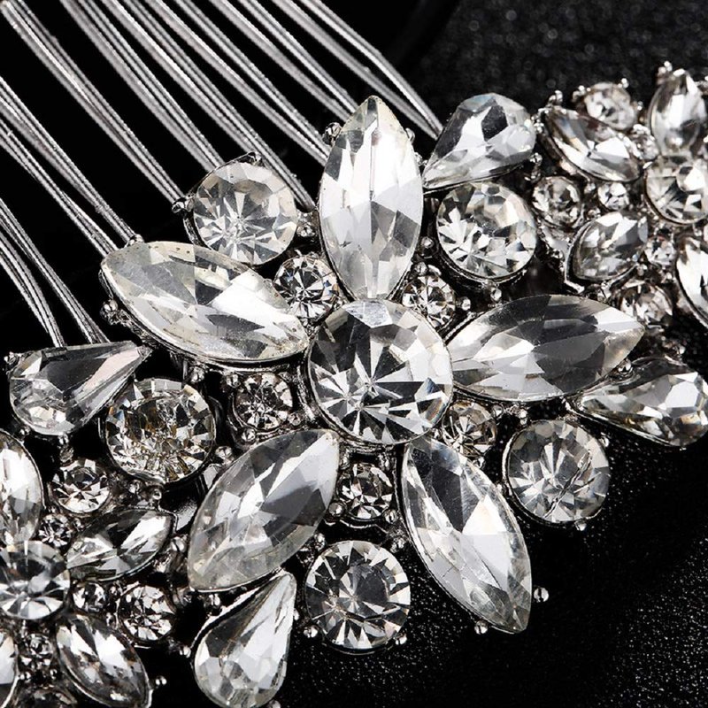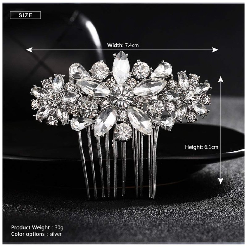 Crystal Wedding Hair Comb Rhinestone Bridal Side Hair Comb Hair Pin Flordal Headpiece Hair Jewelry Silver color Hapibuy