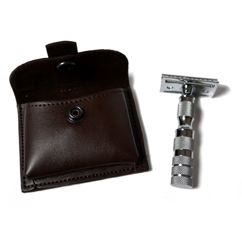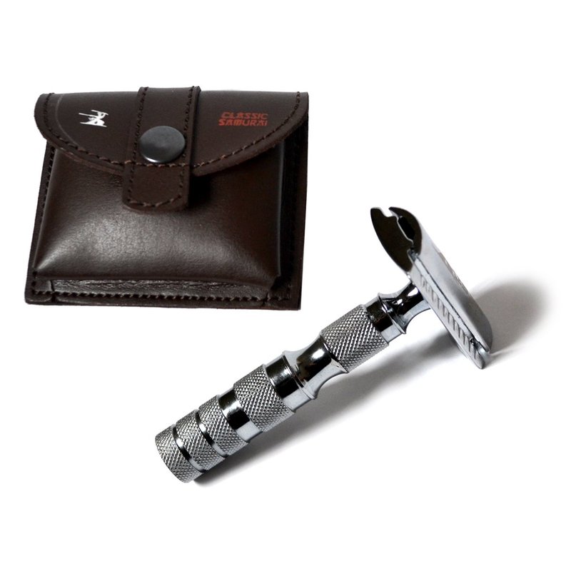 CS-205 Classic Samurai Travel Double Edge Safety Razor Chrome Plated with Free Leather Case