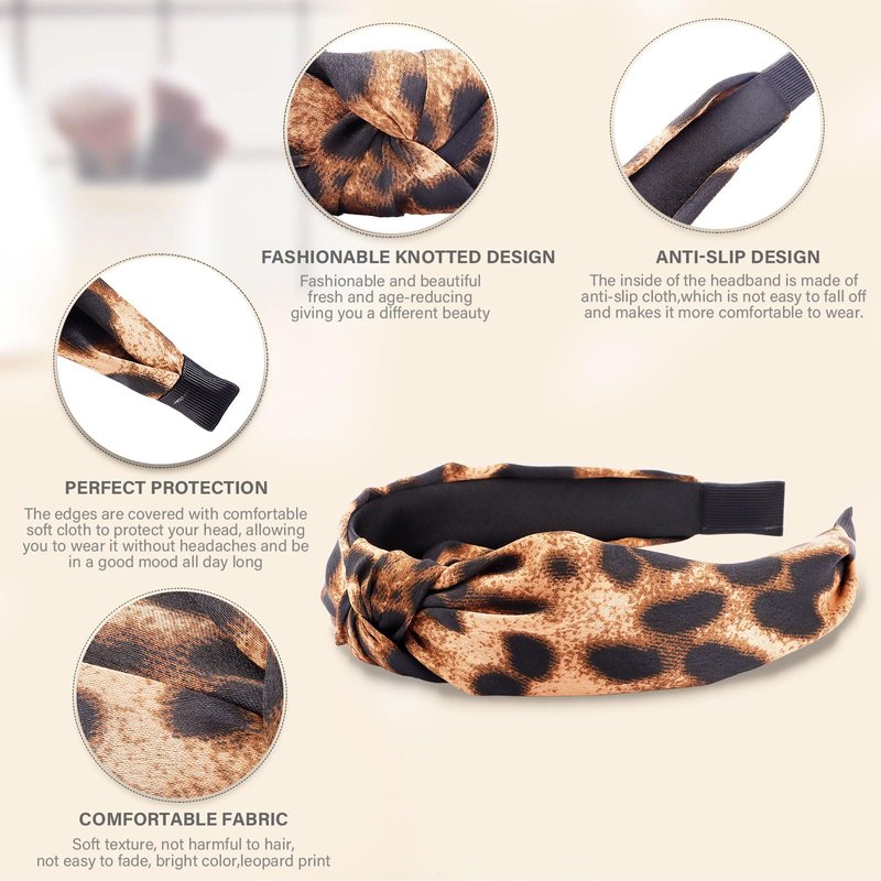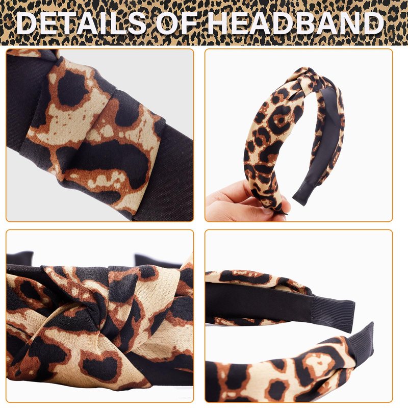 CUBACO πͺπΌπ©π¨πͺπΆ 4PCS Knotted Headbands for Women, Thick Black and Leopard Print Fashion Bow Knotted Headband for Women's Hair Non Slip, Cheetah Turban Wide Cross Fashion Headbands for Girls