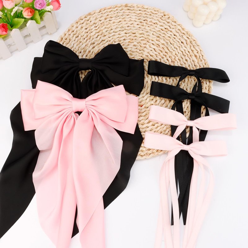 CUBACO 6PCS Hair Bow Clips for Women, Alligator Ribbon Hair Silky Satin Barrettes for Women Kawaii Accessories Bow Clips for Long Thick Hair for Girls Suitable for Birthday Gift (Black Pink)