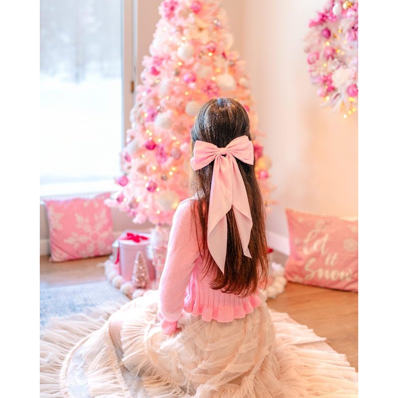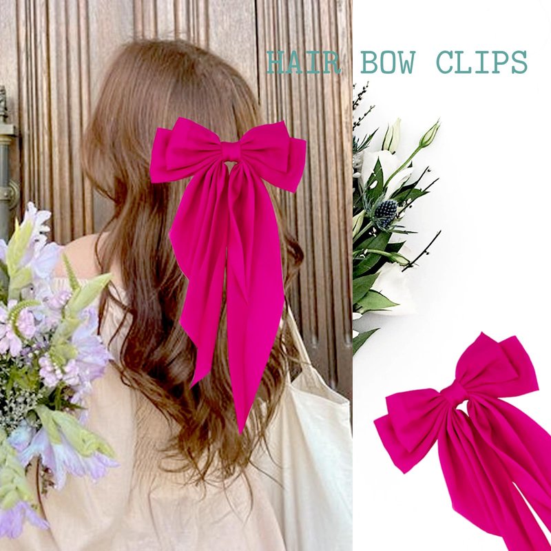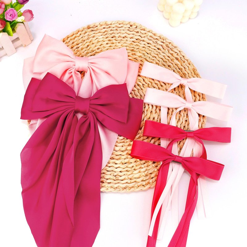 CUBACO 6PCS Silky Satin Ribbon Barrettes, Coquette Bows for Long Thick Hair and Women's Kawaii Accessories (Pink Rose Red)