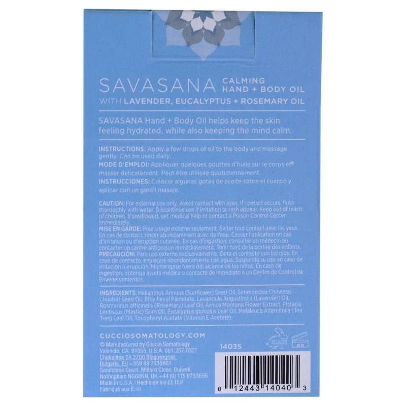 cuccio SOMATOLOGY Savasana Calming Hand and Body Oil - Intensely Moisturizing And Hydrating Blend - Made With Lavender, Eucalyptus, And Rosemary Oils - Soothe Your Mind And Nourish Your Body - 2.5 Oz