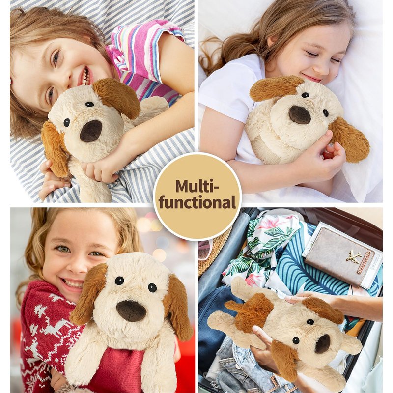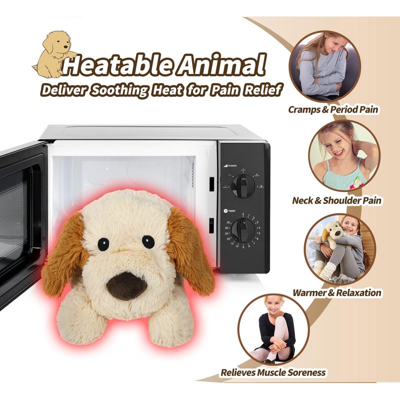 - THOUGHTFUL AND HEARTFELT GIFT FOR YOUR BELOVED ONES: With a cordless design for safety and portability, this cute puppy stuffed animal can be taken anywhere. Warm it up in the microwave for 60 seconds to enjoy a soothing warmth for up to 30 minutes, perfect for muscle relaxation, pain relief, and stress reduction. Or, chill it in the freezer for 4 hours to experience refreshing coolness, providing relief from inflammation, muscle aches, and fatigue. This stuffed dog plush is the perfect companion to keep you cozy when the weather turns chilly