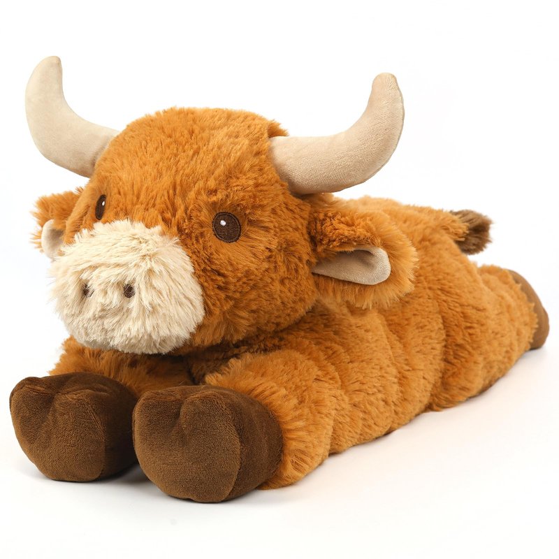- THOUGHTFUL AND HEARTFELT GIFT FOR YOUR BELOVED ONES: With a cordless design for safety and portability, this heatable plush bull cow can be taken anywhere. Warm it up in the microwave for 60 seconds to enjoy a soothing warmth for up to 30 minutes, perfect for muscle relaxation, pain relief, and stress reduction. Or, chill it in the freezer for 4 hours to experience refreshing coolness, providing relief from inflammation, muscle aches, and fatigue. This cow stuffed animal is the perfect companion to keep you cozy when the weather turns chilly